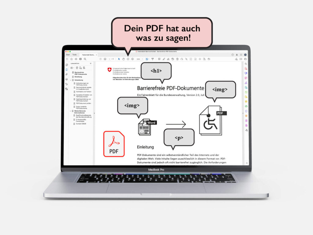 • Tagging in PDFs: PDF-Dokumente müssen korrekt getaggt sein, damit Screenreader sie interpretieren können.