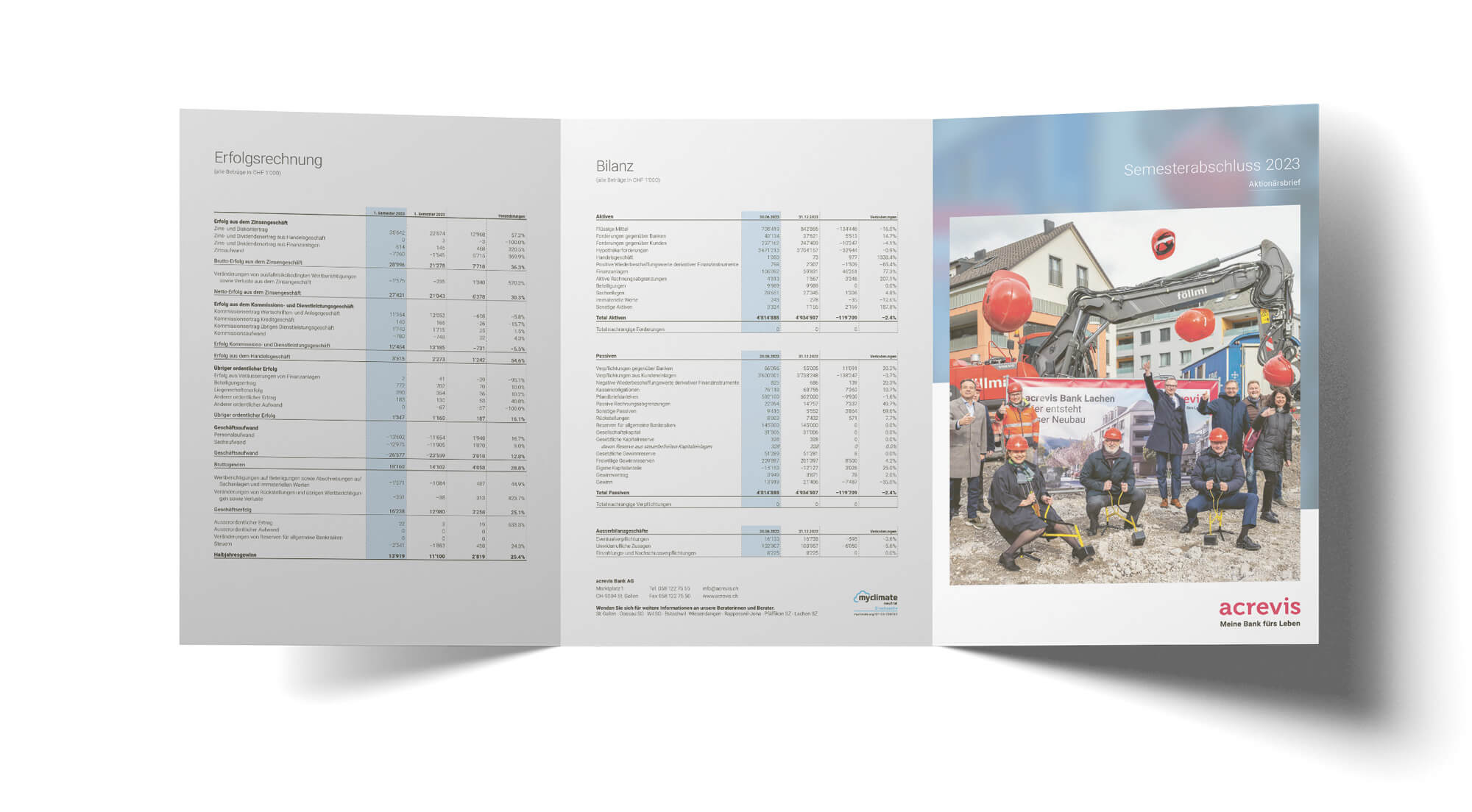 Für eine erfolgreiche Generalversammlung der acrevis Bank AG braucht es einiges an Drucksachen: Jahresberichte, Traktandenlisten, Einladungen und Gästekarten. Rund um diesen jährlichen Anlass dürfen wir die Unterlagen konzipieren, gestalten, produzieren und versenden. Qualität und Zuverlässigkeit sind beim Versand von Finanzzahlen und sensiblen Personendaten Schlüsselfaktoren. Da muss vom Datenhandling bis zum Verpacken der personalisierten Beilagen alles stimmen. Wir haben das Prozess-Know-how und die Kontrollmechanismen, um dies zu gewährleisten.