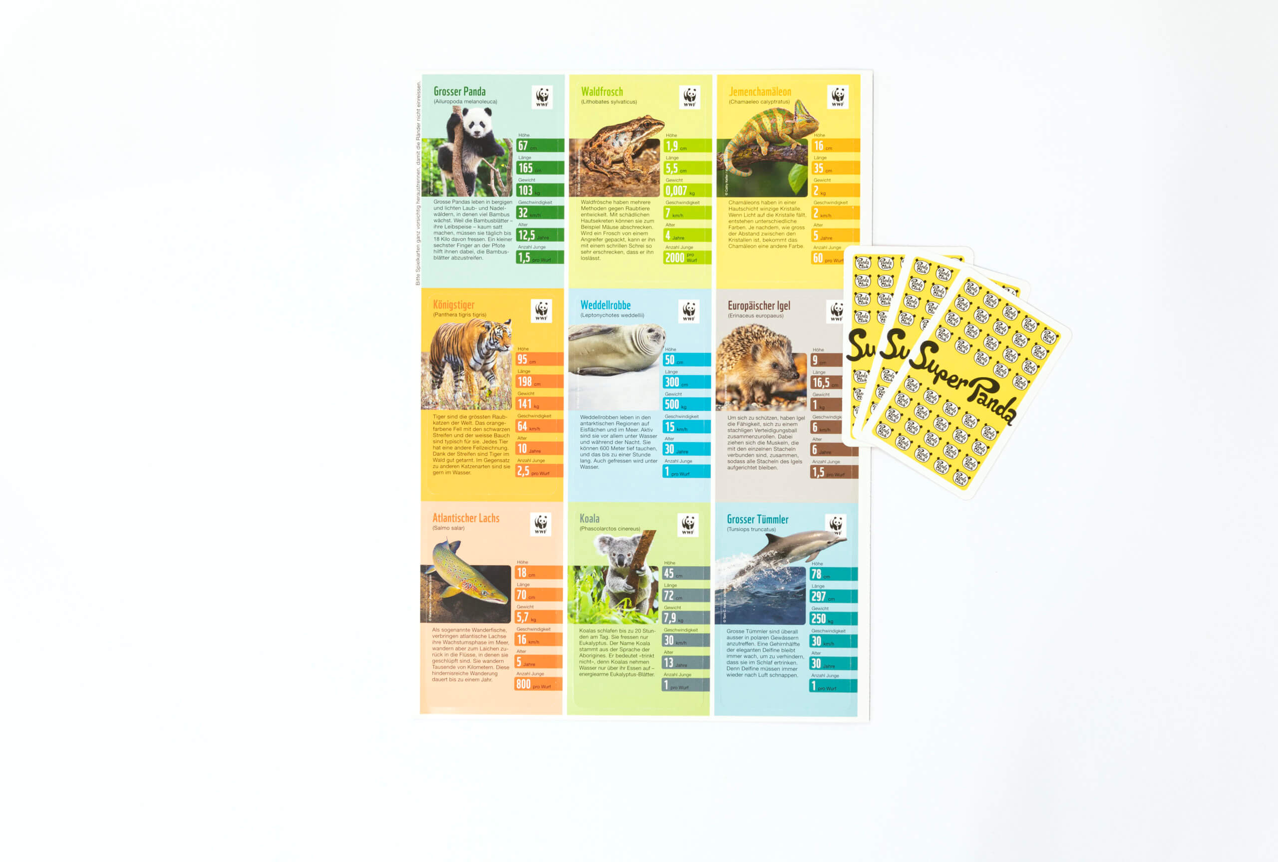 «Kinder für die Wunder der Natur begeistern» – dies ist eines der wichtigsten Anliegen des WWF Schweiz. So entwickelten kreative Köpfe des WWF ein Quartett – wir erarbeiten die technischen Lösungen dazu. Wie stark soll das Papier sein, damit die Karten Stabilität aufweisen, aber die Falzung und das Einheften in verschiedene Magazine trotzdem noch möglich bleiben? Wie stark dürfen die Karten gestanzt sein, damit diese im Kartenbogen einfach herausgenommen werden können und trotzdem nicht herausfallen? Für die Umsetzung braucht es ein gutes Netzwerk an erfahrenen Fachpersonen, die sich nicht mit der erstbesten Lösung zufriedengeben. Das Erstellen von verschiedenen Prototypen zeigte die Machbarkeit auf – und es funktioniert!